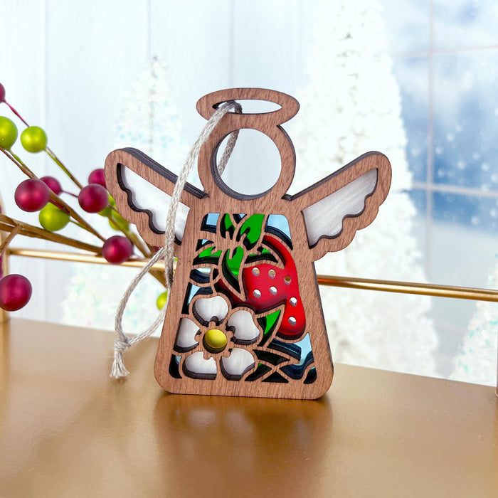 Celebrate a special moment with the strawberry ornament. This angel ornament, a delightful strawberry gift, is perfect for anyone cherishing memories or celebrating milestones. Add it to your angel figurines collection, or gift it to enhance someone else's. Feature it prominently as freestanding strawberry decor — such as sitting it on a window sill or shelf. Alternatively, hang it as a Christmas tree ornament to enhance your holiday decor. Surprise someone with it as a Christmas ornament, and watch it brighten their space all year.